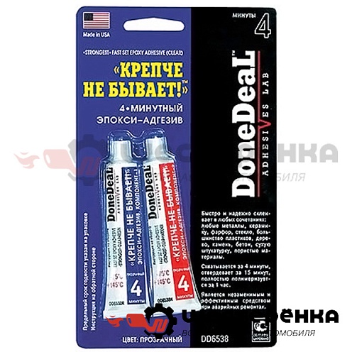 Клей эпоксидный 2-х компонентный 4мин. "Крепче не бывает" прозрачный 2х28гр (DoneDeal) 6538