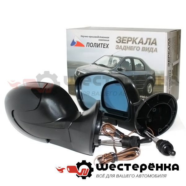 Зеркало заднего вида Renault Logan (с/о, голубое, обогрев, мех) Политех к-т 2шт.