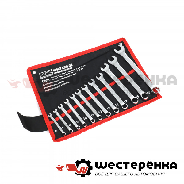 Набор ключей комбинированных (12шт: 6,7,8,9,10,11,12,13,14,17,19,22мм) холодный штамп CR-V в сумке RM3240637 (RedMark)