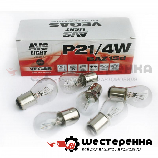 Лампа 12V P21/4W BAZ15d Vegas смещённый штифт A78339S (AVS)